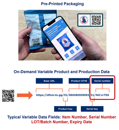 Products that will use only the Base URL, Product Key & Product GTIN may be printed as part of the product packaging artwork as the information is static data printed without the need for additional production data information.