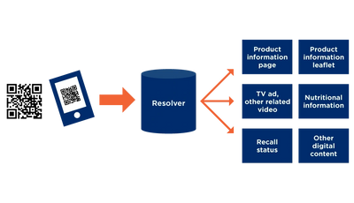 For example, a resolver could link the GTIN stored within a URI to show traceability, nutritional or sustainability information about a food or drink product. For hardware, it could link to things like instruction manuals or how-to videos. At the same time, the resolver can link an identified item to information for business partners such as recall status APIs, master data, hazardous handling instructions and more.